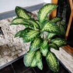 Dieffenbachia Camouflage is known for its unique foliage that gives it the impression of a camouflaged plant.